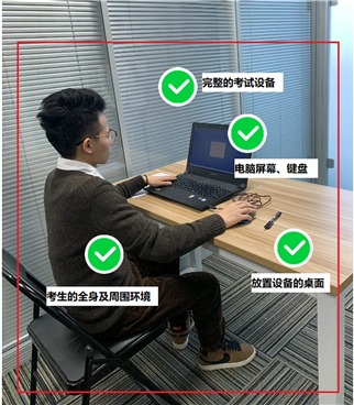 (四)考生应参照说明书中《智考云在线考试规范》的要求,调整好摄像头的拍摄角度和身体坐姿,并确保上半身能够在电脑端的摄像范围中,拍摄角度应避免逆光。