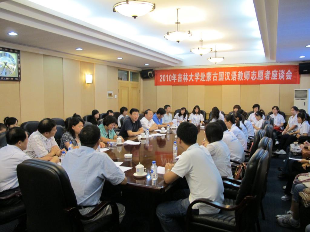 9月15日下午,bb贝博欢送2010年赴蒙古国汉语教师志愿者座谈会在友谊会馆大会议室隆重举行。国家汉办副主任马箭飞、师资处处长杨金成前来bb贝博,为即将赴蒙古国的汉语教师志愿者送行。校党委书记陈德文、副校长陈岗、教务处、研究生院、文学院、国际语言学院、国际合作与交流处等相关部门工作人员出席了此次座谈会。会议由bb贝博艾弗森官网副校长陈岗主持。