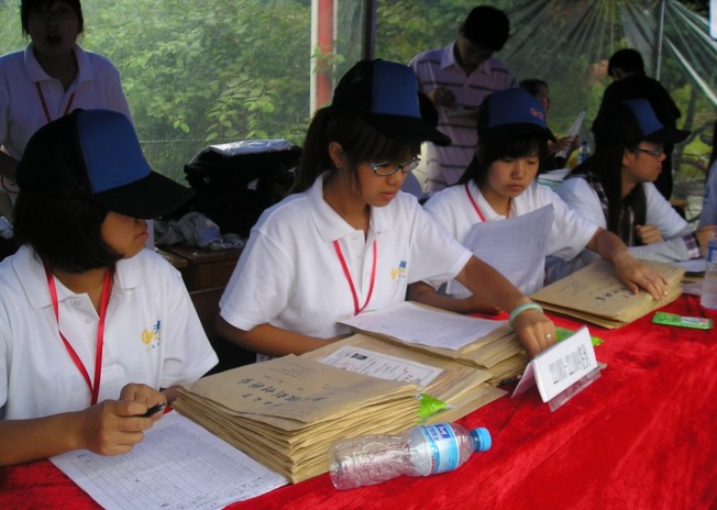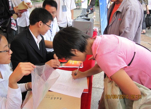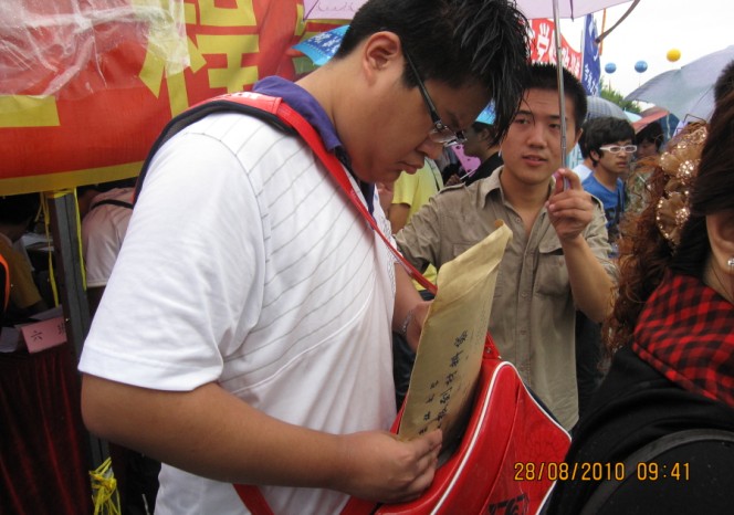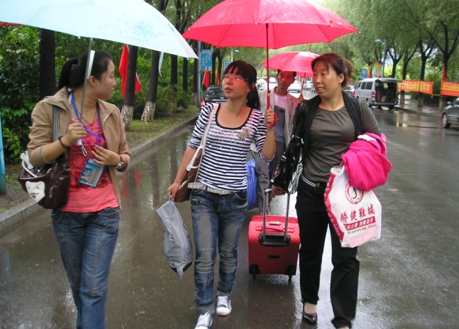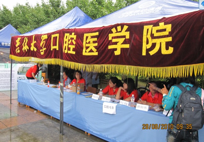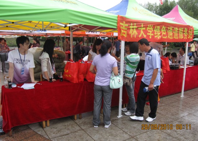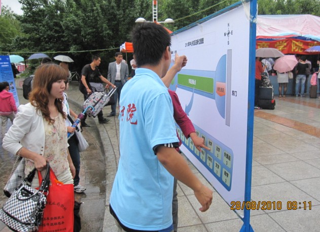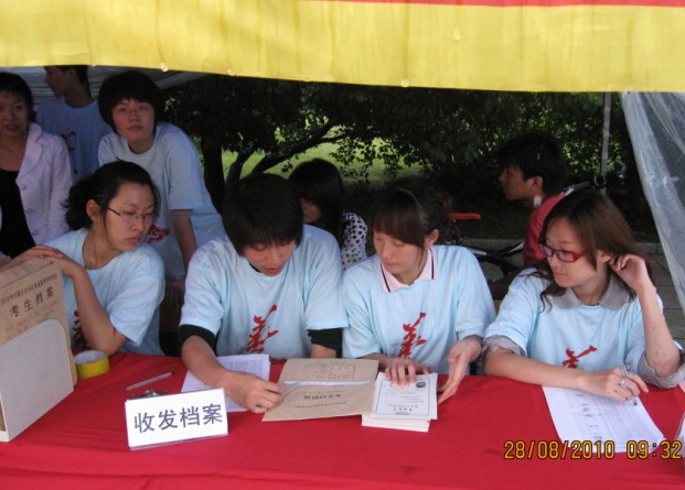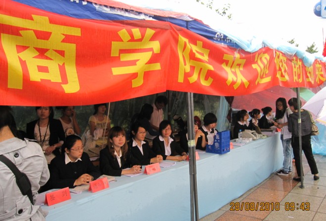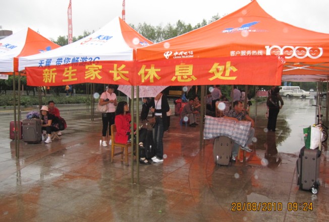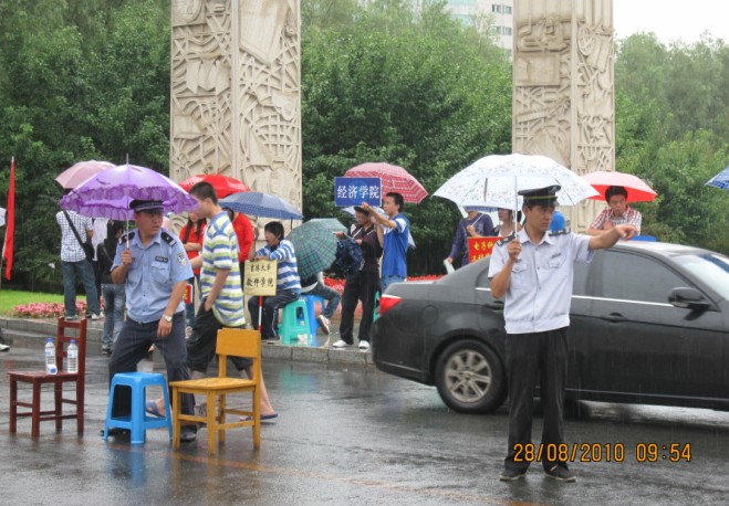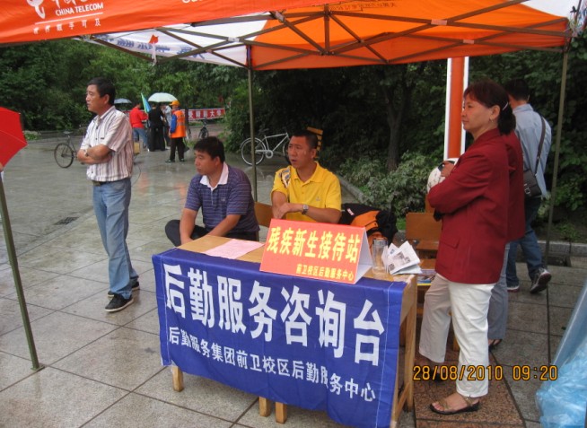 组图一:迎新工作人员于五月花广场迎接2010级新生。