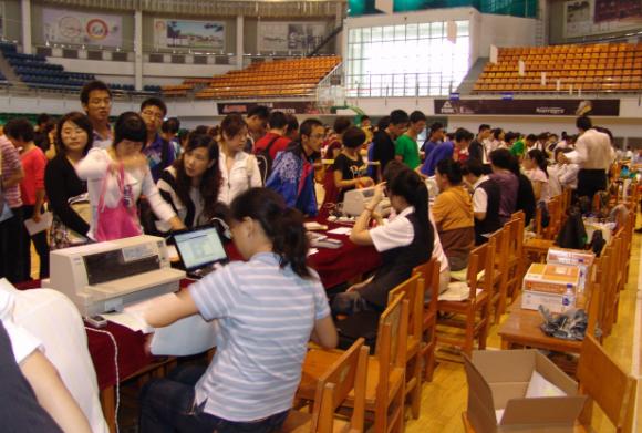 8月28日,学校开始了一年一度的迎新工作。早八时,经过精心准备的新生收费工作在中心校区体育馆及各校区收费现场有序展开。与以往不同的是,在今年的收费现场,再也看不到在人们心目中留下深刻印象的缴费排长队的景象。