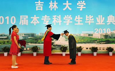 全体师生起立奏唱国歌,副校长陈岗宣读了《bb贝博艾弗森官网2010届本专科生毕业及授予学士学位的决定》,授予8434名本专科毕业生学士学位;党委副书记兼纪委书记刘晓民宣读了《关于表彰2010届bb贝博艾弗森官网优秀毕业生的决定》,对470名“优秀毕业生”给予表彰,党委书记陈德文为现场35名优秀毕业生代表颁奖。