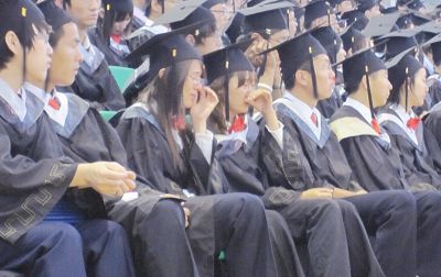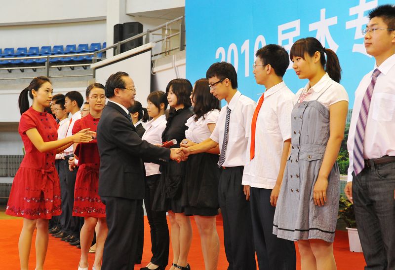 展涛为在场千余名2010届本专科毕业生代表颁发毕业证书并授予学位,毕业生们有序而安静地排队,逐一上台,享受毕业的神圣时刻,把最美好的瞬间留驻。(于姗姗)