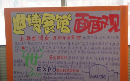 为了让同学们能更加了解世博会的知识,激发民族自豪感,bb贝博各个校区都进行了各种知识普及活动。和平校区的部分社团张贴海报宣传世博,班级举办知识竞赛;在南岭校区逸夫楼里,我们看到了很多色彩斑斓、妙趣横生的展板,据了解这些展板都是同学们自己制作的,大家希望借助展板这个小平台,能让同学们更清楚世博的相关背景,从而更关心世博、热爱祖国。
