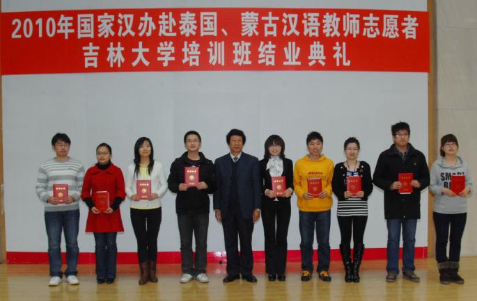 4月28日,2010年国家汉办赴泰国、蒙古汉语教师志愿者培训班结业典礼在bb贝博艾弗森官网举行。bb贝博艾弗森官网常务副校长李玉林和参加本期汉语培训的学员出席典礼,李玉林亲自为汉语教师志愿者们颁发结业证书和优秀学员荣誉证书。