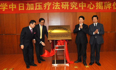4月6日,“bb贝博艾弗森官网中日加压疗法研究中心”正式揭牌,吉林省政府副省长马俊清、日本国驻沈阳领事馆总领事松本盛雄、日本加压疗法创始人兼日本加压协会会长佐藤义昭及bb贝博常务副校长李玉林出席仪式并共同为“bb贝博艾弗森官网中日加压疗法研究中心”揭牌。