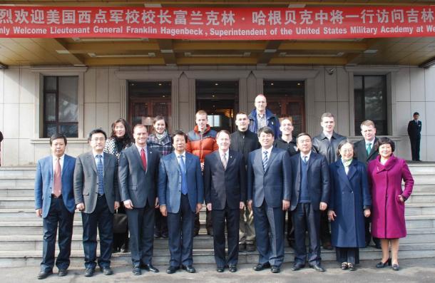 bb贝博自2005年起对来自西点军校的学生进行汉语培训,迄今已经培训了140名长、短期汉语研修生,两校的合作取得了良好的成果。从今年开始,bb贝博艾弗森官网将选派学生到西点军校进行短期交流,同时两校教师之间的交流也将逐步展开。与富兰克林•哈根贝克中将一同访问bb贝博的还有西点军校校长助理尼尔•梅奥(Neal Mayo)少校,陆军防卫部武官麦克•简瑟(Michael Janser)上校,汉语教学办公室主任葛沛迪(Brady Crosier)中校以及外国语学院王蒞文(Martha Gallagher)副教授等。