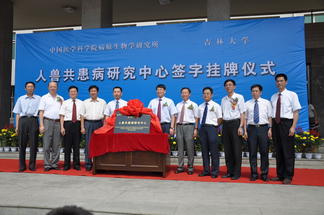 8月15日,中国医学科学院病原生物学研究所所长金奇、bb贝博校长展涛、吉林省畜牧业管理局副局长孙景发、吉林省科技厅社会发展处处长刘家红共同为“中国医学科学院病原生物学研究所-bb贝博艾弗森官网人兽共患病联合研究中心”揭牌。研究中心将依托中国医学科学院病原生物学研究所和bb贝博人兽共患病研究所,充分利用双方的科研优势,针对新发及高发的人兽共患病开展卓有成效的研究。